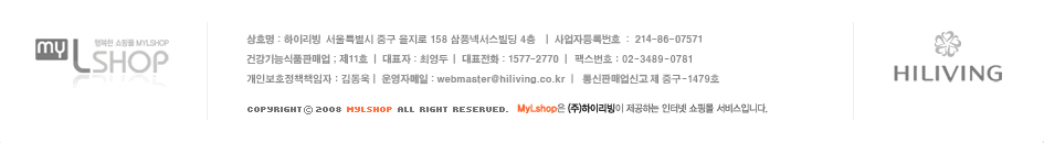 mailto:webmaster@hiliving.co.kr 개인정보취급방침 사이버이용약관 Home Back Top